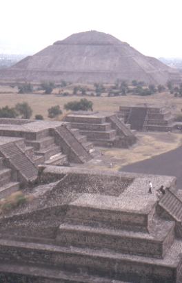 die Sonnenpyramide (hier im Bild) hat eine Grundfläche von 225 mal 225 Meter und ist 63 Meter hoch - 2000 Leute